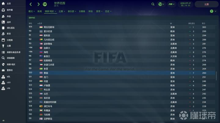 第一场比赛的对手是泰国队。先给大家看一下游戏中中国和泰国的世界排名。(仅供参考)