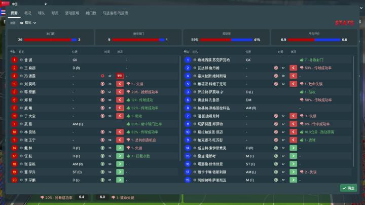 模拟完了后,我对于在游戏中执教国家队的感受有以下几点: