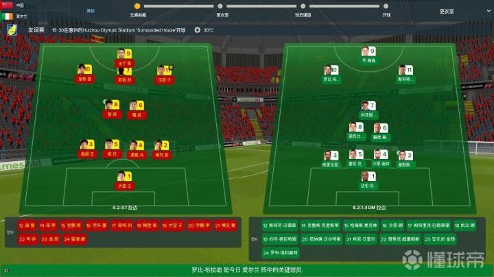 在本次模拟中,对方爱尔兰的阵型是4213阵型,出现在首发位置的爱尔兰球员有很多我们都耳熟能详,比如罗比·布拉迪、沙恩·达菲、科尔曼等等。