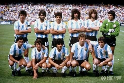 (卫冕冠军的首发11人,前排中间就是年仅21岁的马拉多纳)