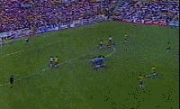 在那个年代,即使是电视业发达的英格兰,人们在看联赛、足总杯赛事有时也不一定都能观看到彩色的影像,何况当时很多球员还流行蓄胡子、一头又浓又密的烫发、或者直接不修边幅的任长发随风飘逸,如果遇到下雨天的赛事转播,你可以想象看到的电视画面就好像是“糊”掉的。但这届世界杯全部都是彩色影像,嗯,没错,鲜活的色彩、逼真的现场噪音。而且这一场对决双方的服饰,在当时可是世界上其他国家少见的球衣颜色,荣耀的金黄色与高贵的蓝白条纹,这种视觉冲击对于全世界首次收看到彩色直播的球迷们,那种震撼可想而知。