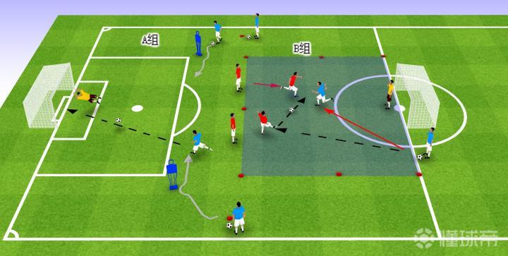 1)球员按照位置分为两组进行训练,A组为边后卫与边锋,B组为其他球员。