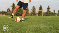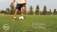 先用一只脚的内侧将球向自己另一只脚的内侧拨动。