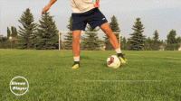 当球快要接近另一只脚时,向球滚动的方向滑步,再用第二只脚内侧将球停下。
