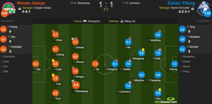 北京时间3月31日19:35,2018赛季中超联赛第4轮,河南建业坐镇郑州航海体育场主场迎战大连一方。上半场,卡拉斯科打进加盟球队后的处子球为一方取得领先,巴索戈打进弧线球扳平比分;下半场,张翀贡献关键扑救,双方均无建树。最终,河南建业1-1大连一方。