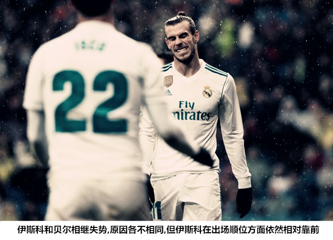 在皇马完成战术转轨的过程中,C罗比去年更早地打开了进球账户,三名主力中场得到了更多的轮休机会,阿森西奥和巴斯克斯的双边前卫组合收获了无数好评。与之相对应的是,原本被视作“冬窗强援”的贝尔沦为替补,伊斯科的出场时间也减少了很多,这对在上赛季欧冠决赛前为一个主力位置展开过激烈竞争的前场双星同时沦落令人唏嘘。