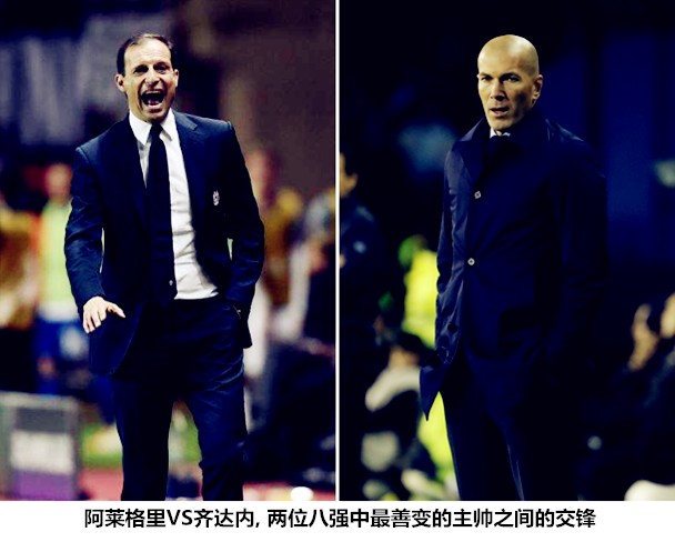 阿莱格里是一位建队能力和资源整合能力极强的主帅,齐达内也是一位才思敏捷且能够不断推陈出新的教练,两位主帅在近两个赛季都尝试了很多阵型、打法和人员配置。阿莱格里的业务能力已经得到了业界的认可,齐达内的执教水平却长期处于被低估的水平。能够令人信服地击败巴黎圣日耳曼,源于齐达内从近两个西班牙国家德比(联赛)的失利中吸取了经验教训,耐心而又勤勉的白衣战士很好地执行了主帅的战术方针,此番对阵同样以顽强和坚韧著称的尤文图斯,皇马需要将在体力和脑力上完成超额输出。