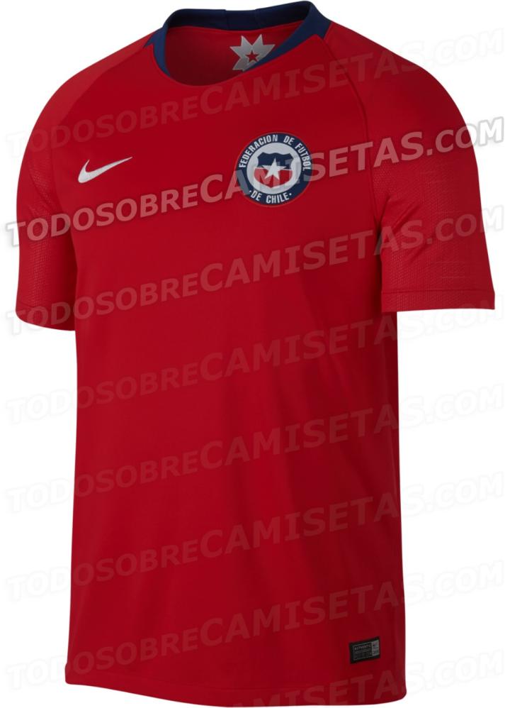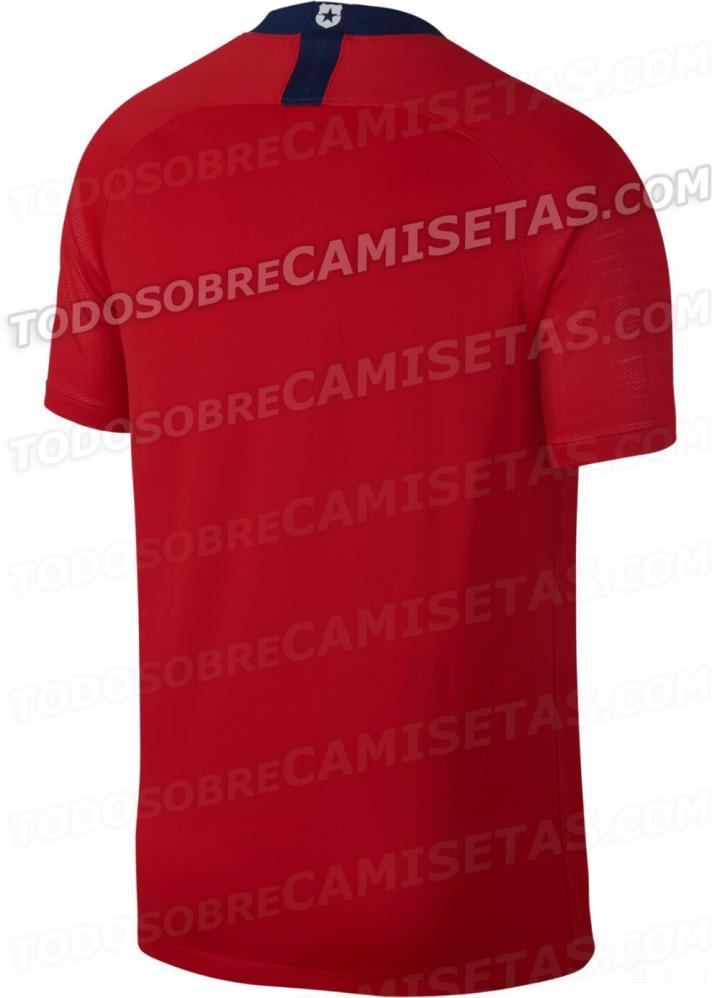 全新智利国家队主场球衣拥有经典的红色外观,并加入海军蓝色装饰。球衣拥有全新运动衣领设计,并且衣领内加入曾经象征智利的八角星与象征国家统一的五角星。衣领后的透气条带上加入源自智利国徽的盾型图案。
