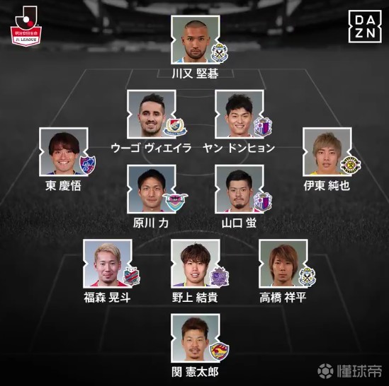 日本J1联赛官方转播方DAZN近日官方发布了J1联赛第5轮比赛的最佳阵容。其中,获得赛季联赛首胜的大阪樱花有包括队长山口萤的2名球员入选,比赛中梅开二度破荒的磐田喜悦前锋川又坚碁也名列其中。