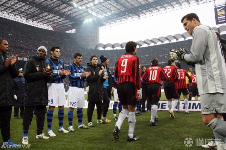 (2007-08赛季意甲第17轮米兰德比赛前国米球员列队欢迎刚刚获得世俱杯冠军的米兰球员)