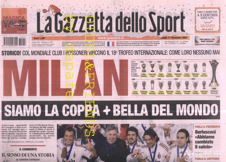 (《米兰体育报》关于2007世俱杯冠军的报道)