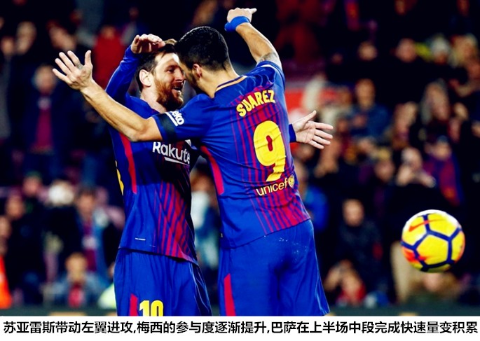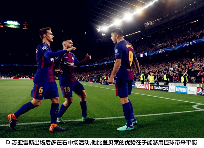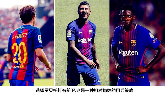 尽管没有进球和助攻数据的录入,但梅西的作用依然不容低估,阿根廷人实际上直接参与了前三粒进球,内收肌的伤势阻挡不了他前进的脚步。2014/15赛季,巴塞罗那能够在不被看好的情况下加冕三冠王,被改造为梅西保镖的拉基蒂奇功不可没,本赛季前期,保利尼奥扮演过类似的角色,加泰媒体曾一度戏称巴萨的阵型为“43保利尼奥2”。随着赛季的深入,技术缺陷明显的巴西中场出场时间日渐萎缩,世人的目光被新援库蒂尼奥和奥斯曼-登贝莱的进攻表现所吸引,开发出双前锋之外的第三爆点固然重要,但如何在强强对话中保证平衡同样十分关键。作为这一理念的延伸,罗贝托能否在右前卫位置上扎根,其与塞梅多的组合在赛季末戏份如何,奥斯曼-登贝莱能否为团队收敛个人锋芒,这些都是牵一发动全身的大问题。