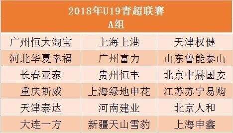 4月3日,全国青少年男子足球超级联赛U19年龄段A组正式打响,18支球队将参加34轮赛事,争夺最终的联赛冠军。A组包括16支2018赛季中超俱乐部,以及新疆雪豹纳欢和上海申鑫俱乐部。