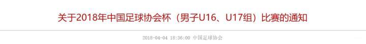 近日,中国足协官网发布公告,公布了中国足协杯(男子U16、U17组)赛事竞赛规程。中国足协杯U16、U17组比赛将在近期进行,两个年龄段共有48支球队参加本次比赛。