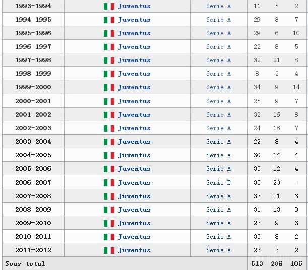 亚历山德罗-德尔-皮耶罗:188(478场188球0.393效率,意甲188球)