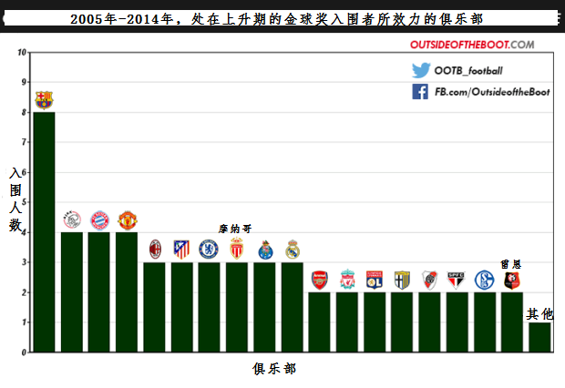 需要特别指出的是,虽然在这幅图中没有将摩纳哥和雷恩与其他俱乐部进行对比,但是这两支球队同样“制造”出了世界级的球星,摩纳哥有阿德巴约、阿比达尔以及亨利,雷恩则有路易斯-法比亚诺和切赫作为代表。