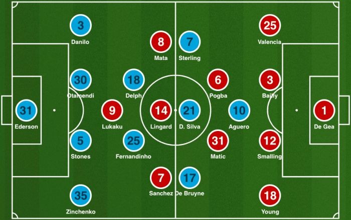 图:预计先发阵容(曼城:蓝;曼联:红)