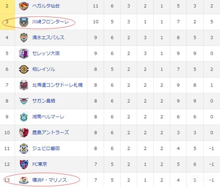 川崎前锋: 积分10 净胜球5 排名第3 近5场:胜负胜负平→