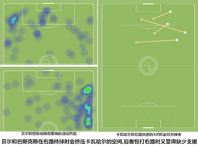 从贝尔复出后的表现来看,他已经失去了在边路依靠突破打开局面的能力,对伤病的忌惮导致其在对抗和跑动方面的输出达不到昔日边路B2B的标准。虽然还能够完成反越位进攻和外线强行超车传中,但贝尔与人们期待中的“边锋”还有很大的距离。从赛后的数据统计上来看,贝尔无愧于当场最佳球员的称号,不过,威尔士人在上半场的表现并不出彩,他的几次成功突破和传中全部发生在下半场,这种明显强烈反差足以解释齐达内为何会在关键比赛中将其作为后手使用。