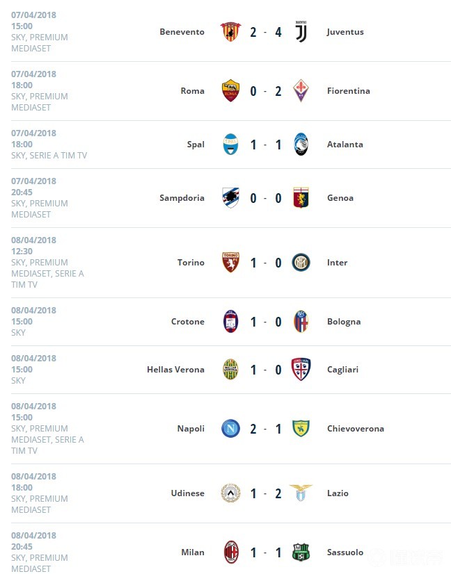 第30轮,拉齐奥6-2贝内文托,罗马1-1博洛尼亚。