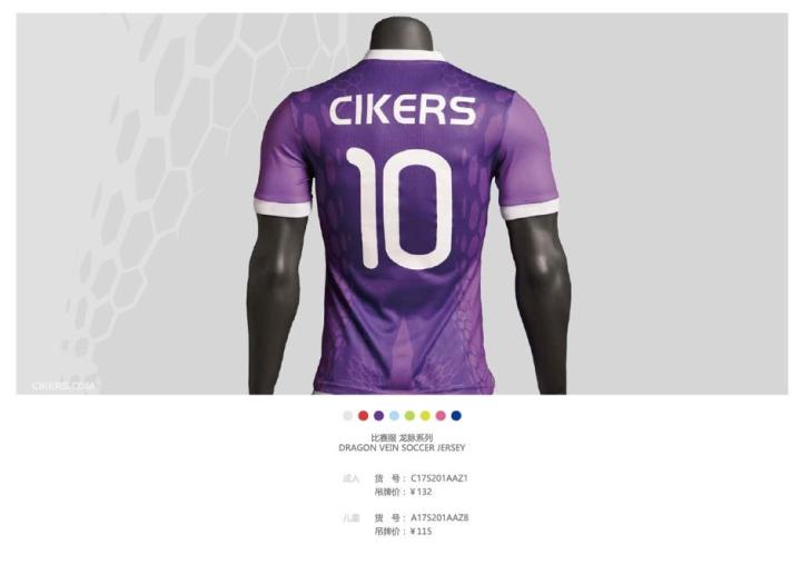 线上虚拟试衣间,定制喷刻自动排版软件,热升华自动成图系统等等。这套系统使得整个生产、库存、销售流程都能实现信息化自动管理,节省了大量的人力、时间和库存成本。更是因为Cikers球衣的制作流程全都是由机器数字化操控的,产品质量自然也就成为了最令人放心的一环。