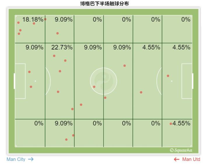 博格巴第48分钟远射被扑救,完成了曼联本场比赛的第一次射门。京多安还了一次门柱之后,上半场因为出球拖沓被黑的体无完肤的博格巴头顶脚踢,比分转瞬间变成了2-2。