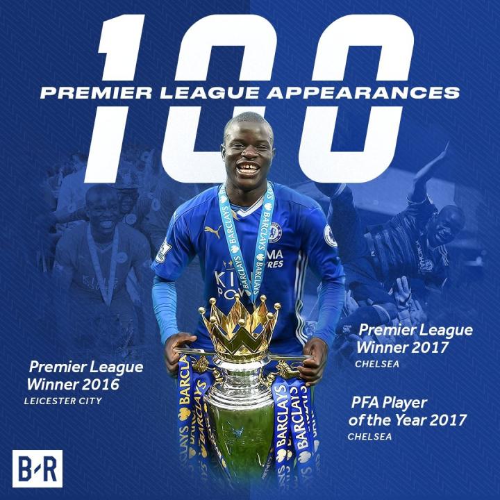 切尔西1-1战平西汉姆联的比赛里,坎特完成了自己在英超的第100次登场。自打被莱斯特城从法甲的卡昂以560万英镑的身价买来之后,这个法国人在英超先后代表两家俱乐部举起了联赛冠军奖杯,还成为了这个星球上最好的防守后腰之一。