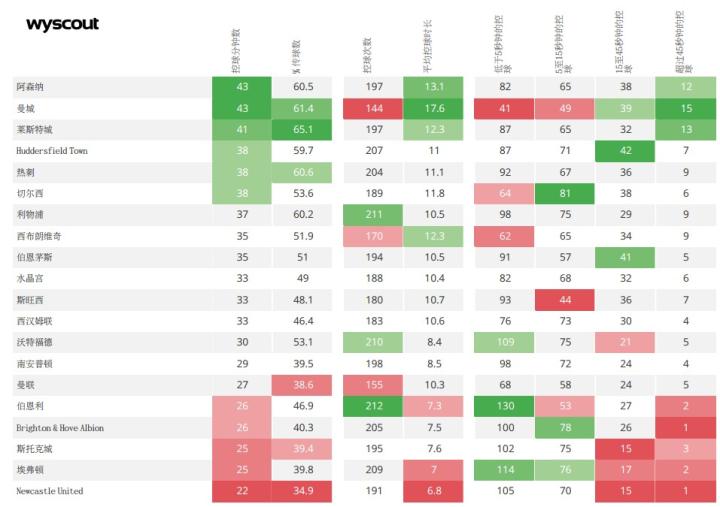 (图)曼城在本轮英超里控球次数倒数第一,控球时长和长时间控球数正数第一,人员轮换丝毫没有影响球队的整体风格