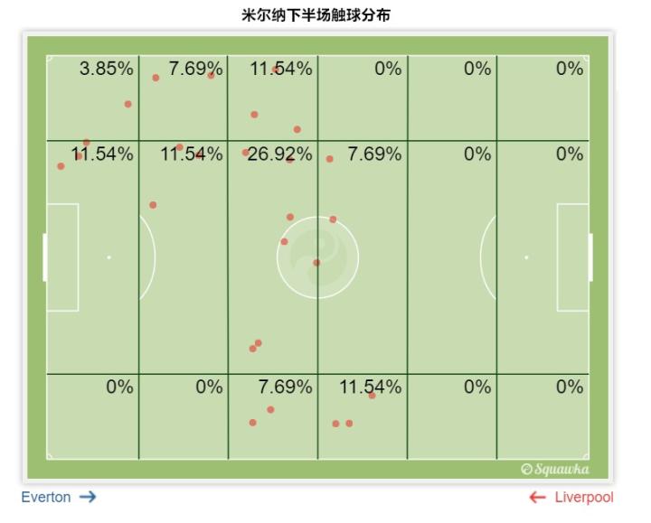 0-0战平埃弗顿的比赛中,利物浦前68分钟的控球率始终保持在67%左右。而在换下了米尔纳之后,剩余时间的控球率下降了二十个百分点。虽然这和两位主帅最后时段的战术选择密切相关,但米尔纳本场比赛所表现出的经验和作用有目共睹。