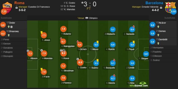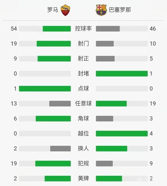 最终,罗马主场3-0胜巴萨,总比分4-4,以客场进球优势完成惊天大逆转。