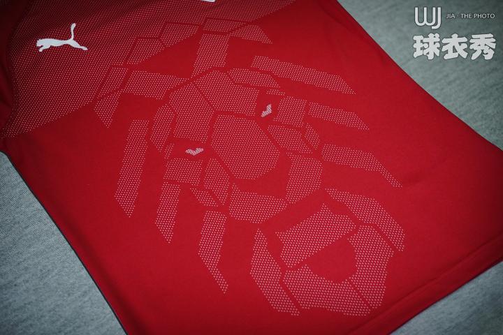↑波希米亚双尾狮的头部形象被针织为暗纹图案出现在球衣正面,十分抢眼。