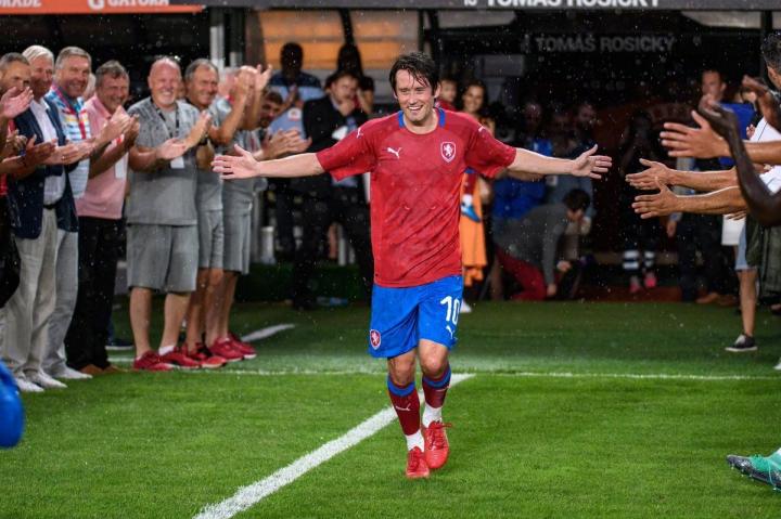 2018年6月10日在布拉格,罗西基在自己的告别赛上最后一次穿上国家队的球衣。