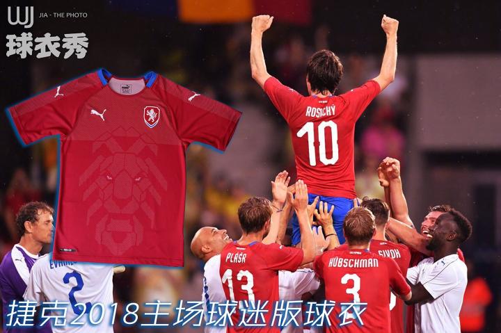 彪马2018年的球衣技术和版型都进行了升级。球迷版相比球员版减去了一些细节,球员版袖口内侧和下摆内侧中关于纪念捷克脱离奥匈帝国独立100周年的相关内容都没有出现在球迷版上。今年许多彪马旗下的国家队在球衣正面都出现着各自球队代表性的特色,而出现在捷克队球衣上的还是那头熟悉的狮子。