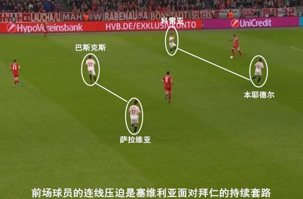 看上去,通过以上几点战术设计继续打出进攻特点后,塞维利亚如同首回合那般通过不断冲击和节奏提升再次掌控了比赛主动权,并向拜仁城门发起了不间断的凶猛攻势,这让海因克斯教练一度来到场边进行指挥。不过,回到主场的拜仁显然不会再像此前那般无助、无力和无序,诚如基米希在赛后所讲:“上半场我们踢得有些被动。塞维利亚很轻易就能通过中场,但是我们并没给他们太多机会。”