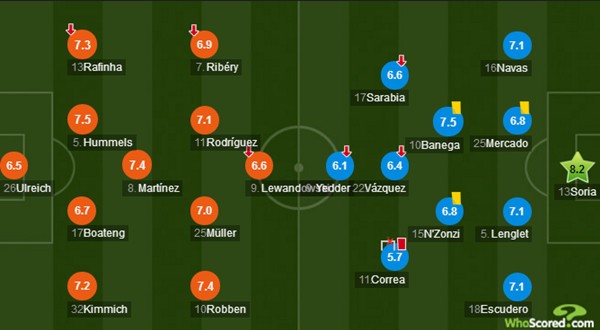 当然,“罗贝里”在比赛中还是存有亮点——虽然与其他攻击手的配合不多,但是通过比赛可以看出两人确实在有意识的尝试“罗贝里连线”。上半场结束前,正是罗本突破后及时分球给左路的里贝里,后者接球后切入禁区晃开防守一脚劲射,可惜射得太正而被索里亚直接扑出。这次进攻与胡梅尔斯的兜射远角是拜仁在上半场少有的几次威胁射门,只是即将迎来续约合同的“罗贝里”还是应明白,如今的拜仁不能继续任由两人依着自己的性子踢球,身体下滑的场上状态要求他们必须更好的融入球队整体。