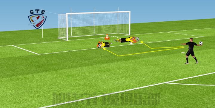 2、教练给出反弹球,门将应在球弹地后迅速接球
