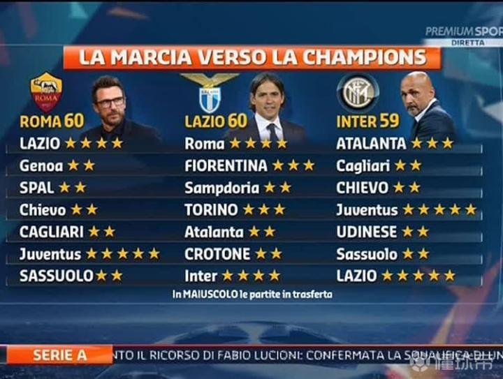 在罗马上轮联赛主场输给佛罗伦萨后,内拉一片唏嘘,庆幸没有被拉大距离,殊不知这是罗马为欧冠神奇之夜埋下的伏笔,淘汰巴萨让罗马在欧冠进入了半决赛,虽然作为对手,但这次确实需要为罗马点赞。拉齐奥上轮联赛客场击败乌迪内斯,成功超越国际米兰进入欧冠区,在周中的欧联杯比赛上,拉齐奥错失首回合优势,在客场溃不成军,输给萨尔茨堡红牛被淘汰。双方在周末的罗马城德比大战上,我们该为谁来加油呢?最好的结果,罗马双雄战平,国米升到第3位,前提是必须赢下真蓝黑之争的这场比赛。