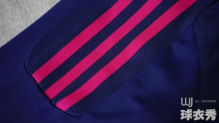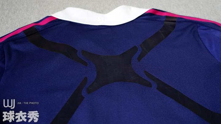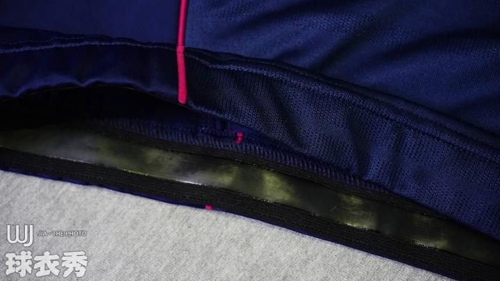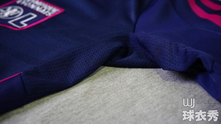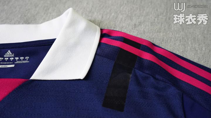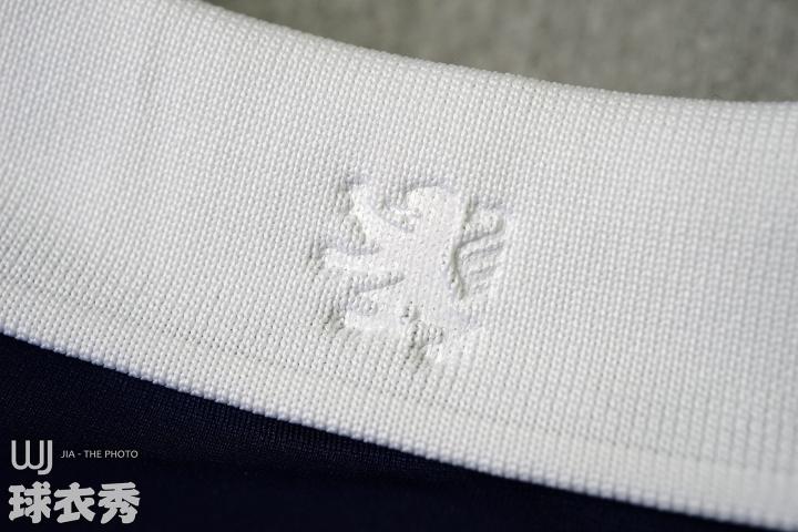 ↑相比球迷版,球员版肩部的三道杠采用热粘合技术。