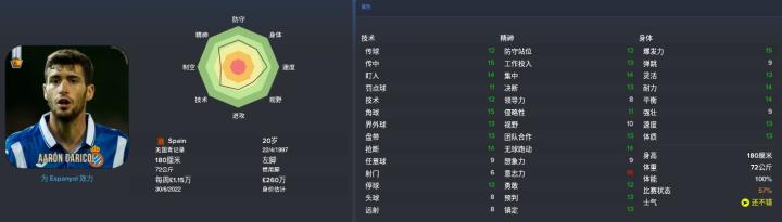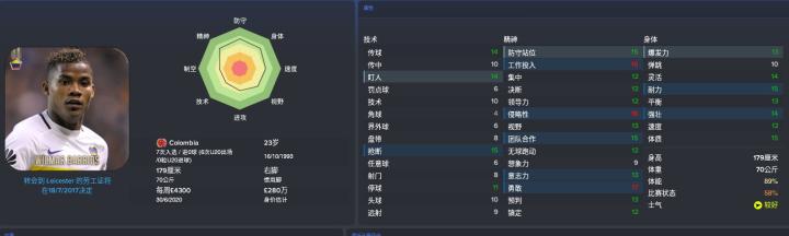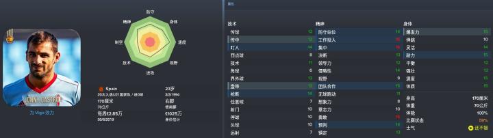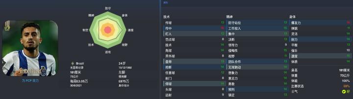 CA148 PA169 反应16一对一18 稳定大赛双13 受伤倾向3 适应性15雄心15 职业20 忠诚18 抗压12