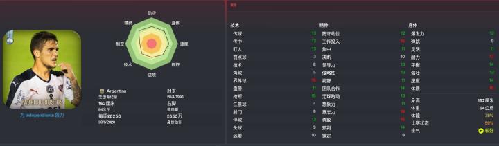评价:属性分配较好 现实中已贵为阿根廷国脚 1米62的身高和隐藏随机是弱点 算是优秀的轮换球员,奥神的档大赛只随了5,三年后也能卖7000万。