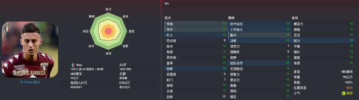 CA133 PA150 属性没有明显短板 隐藏同样没毛病 稳定13大赛13 受伤倾向9 适应性12 雄心14 职业13 抗压13