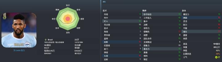 评价:防守技术、身体条件出色,精神属性一般,站位11集中10决断10。建议设置防守型中卫阻截职责。忠诚8是把双刃剑,开档勾引一下会闹不满降价,来了之后也经常经不起勾引。