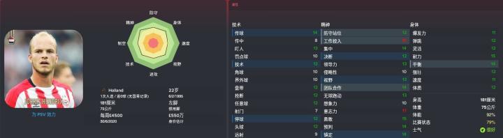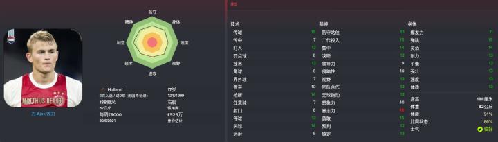 评价:17岁坐稳阿贾克斯主力中卫,现实中红得发紫,荷兰足球复兴希望,开档签下三年变本队青训,打造足球王朝的必选基石。