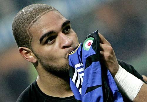 (图)帮助球队绝杀AC米兰后,阿德里亚诺忘情亲吻蓝黑球衣
