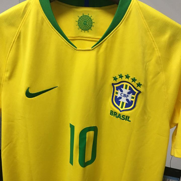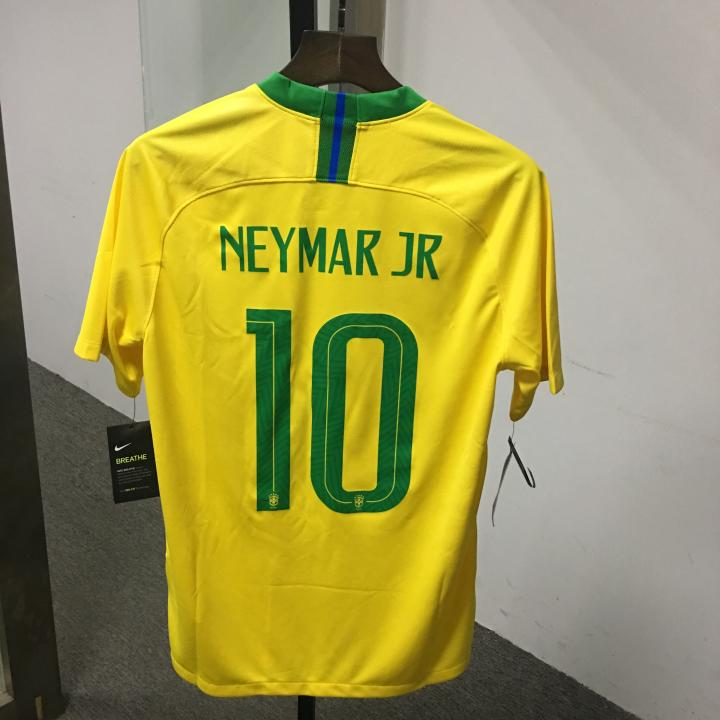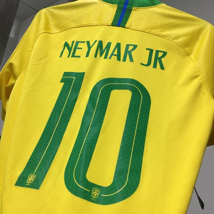 这是一件2018世界杯巴西主场10号内马尔的球迷版印号球衣;