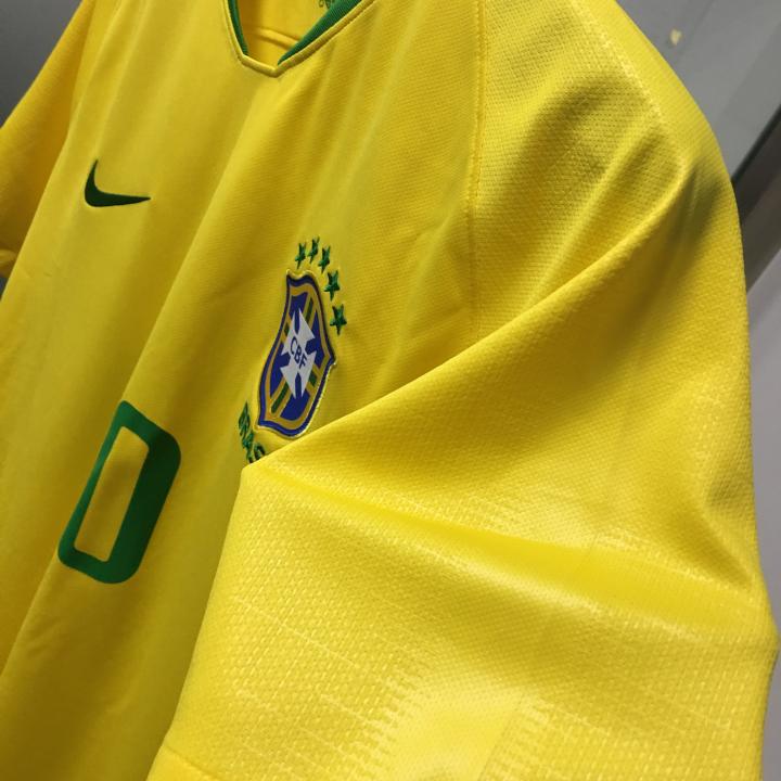 今天球衣大王一起带大家看看耐克当家球队五星巴西的主场球衣实物实拍,自1954年以来,巴西一直身穿黄色的主场球衣比赛,但在过去六十多年里,这些球衣并不总是同一种黄色。今年,球队将穿上比过去二十年中的各版黄衫都更具活力的“桑巴金黄”球衣。为了确定准确的色调,设计师们带着一本色卡前往位于圣保罗的足球博物馆,细心比对找出了与1970年在墨西哥使用的那款球衣相匹配的黄色,那是第一次全世界球迷在彩色电视上收看到的世界杯赛。