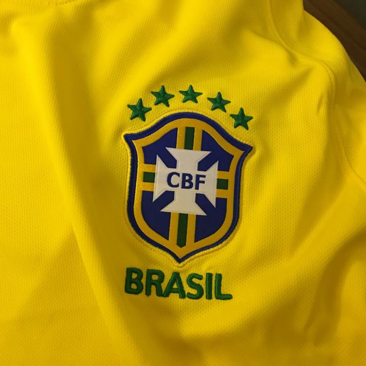 主客场球衣的领内,取自巴西国旗的地球图案被层层辐射线环绕,并在外圈亮出口号“você é a seleção(你的选择)”