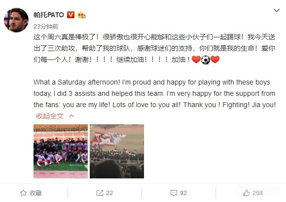在此前结束的中超预备队比赛中,权健预备队3-1大胜苏宁预备队,值得一提的是,巴西球星帕托在比赛中出场,并且制造了权健预备队的全部三粒进球。