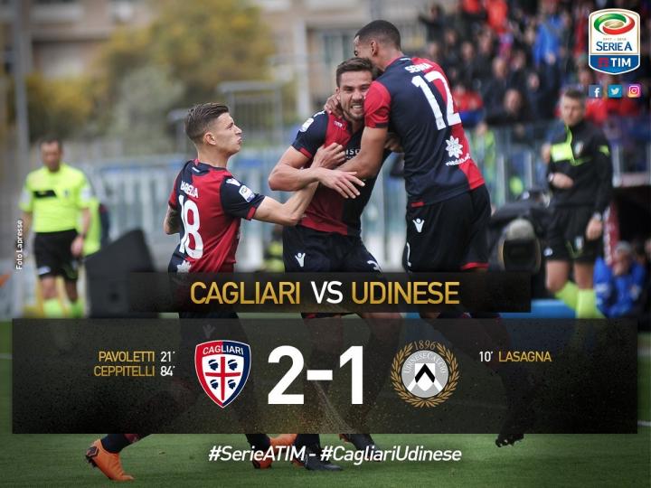 卡利亚里2-1乌迪内斯:米兰旧人大多能混的风生水起,圈叔奥多是个例外,在上赛季带队佩斯卡拉被一顿吊打中途下课之后,本赛季他在乌鸡又被摁在地上摩擦。拉萨尼亚第10分钟的进球一度让乌迪内斯看到希望,然而帕沃莱蒂迅速扳平比分,这是他本赛季打进的第8个头球,此项数据意甲第一,切皮泰利则在第84分钟完成绝杀,送给乌鸡队史最长的9连败。