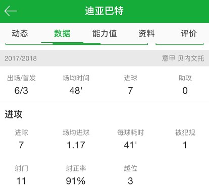 我们来看看他的数据,6次出场3次首发,场均出场48分钟,打进7球,平均每41分钟打进1球,总共11次射门10次射正,平均1.57脚射门就破门一次。要知道,这还是身处于意甲副班长这样的球队,贝内文托本个赛季也不过打进28球,进攻火力联赛倒数第四。而在面对萨索洛梅开二度之后,迪亚巴特成为2001年的达里奥-胡布内尔之后首位在意甲连续3场打进2球以上的球员,真-球队大腿。